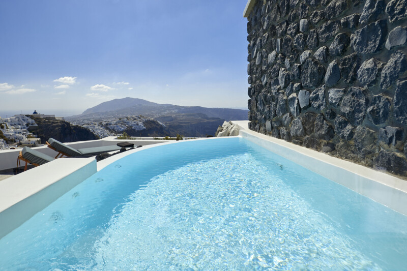 The cave house unfolds onto a private, furnished balcony, where a heated outdoor plunge pool seems to merge with the horizon, framing breathtaking views of the Caldera and the endless Aegean blue. Bathed in light and calm, the powerful yet soothing energy of the Caldera cliffs and the sea awakens the senses, while Santorini’s dramatic landscape sets the scene for a truly timeless and unforgettable experience.